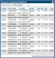 An on screen stock card giving detailed information for all of your material, processed and unprocessed.